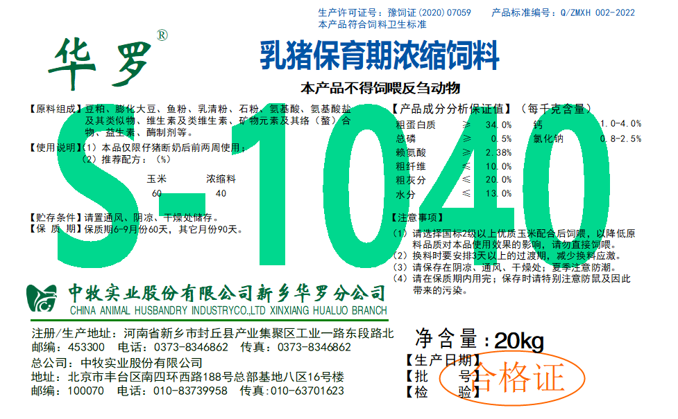 S-1040仔豬保育期濃縮料